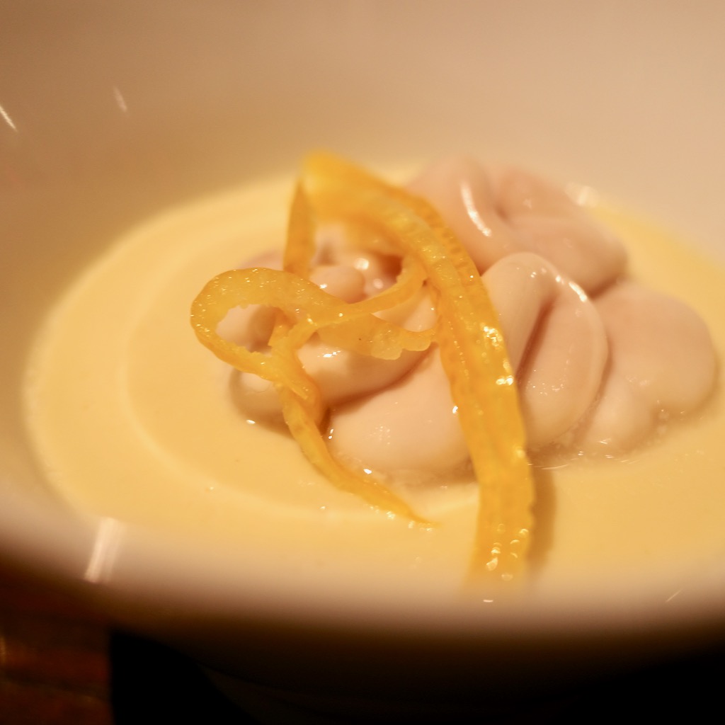 出てきた瞬間にふわっと香るゆずの香りと、卵にも白子が埋め込まれているからすごいシルキーな茶碗蒸しなんだよ。